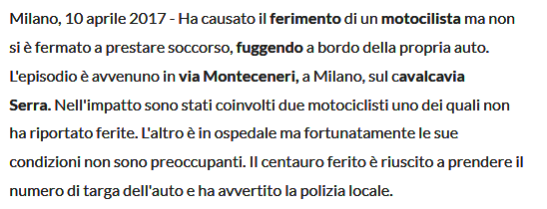 L’argomento in questione è il cavalcavia di Monte Ceneri, a Milano, sul quale è permesso il transito solo alle automobili, per cui niente moto, camion, furgoni o biciclette.