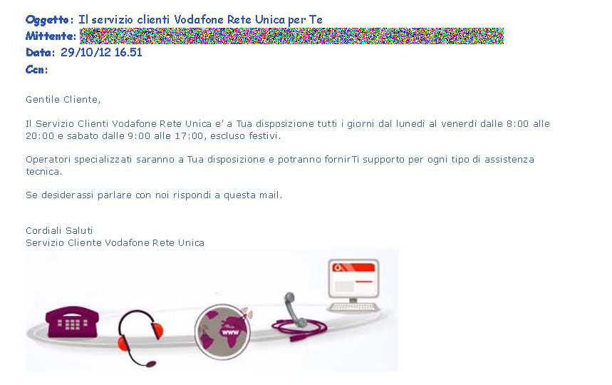 Pubblico una mail inviatami dalla Vodafone nei giorni scorsi: