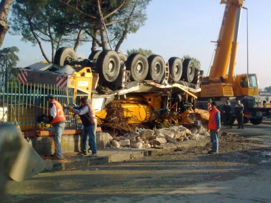 No, non è Bagdad dopo un attentato. Più semplicemente è una delle strade più trafficate di Sesto Fiorentino, come l’ha fotografata sabato mattina Paolo Giachetti: un grosso camion da cantiere si è ribaltato, distruggendo un muro. Per fortuna per quella strada passano pochi pedoni e quindi è finita senza vittime.