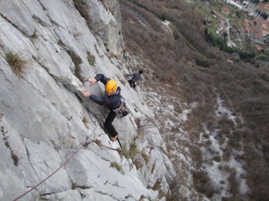 Dopo l’arrampicata del luglio 2009, raccontata nel post Una giornata indimenticabile ( https://paoblog.wordpress.com/2009/07/19/una-giornata-indimenticabile/ ) il Pupo ha deciso di rifarla, come primo, insieme a due amici conosciuti al Corso del CAI.