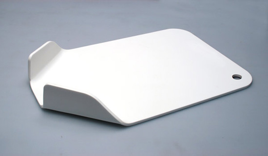 Il tagliere sagomato dalle linee morbide e con il comodo “foro di caduta del cibo” è bellissimo e sembra essere molto pratico: bella trovata!