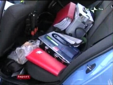 Come potete vedere dalla foto qui sotto il sedile posteriore è pieno fascicoli, valigette e persino dell’etilometro. Tutti oggetti pesanti (specie la valigetta di metallo) pericolosissimi in caso d’incidente.