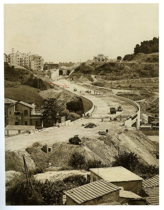 La fotografia ritrae esattamente quel tratto di via Anastasio II in fase di costruzione.