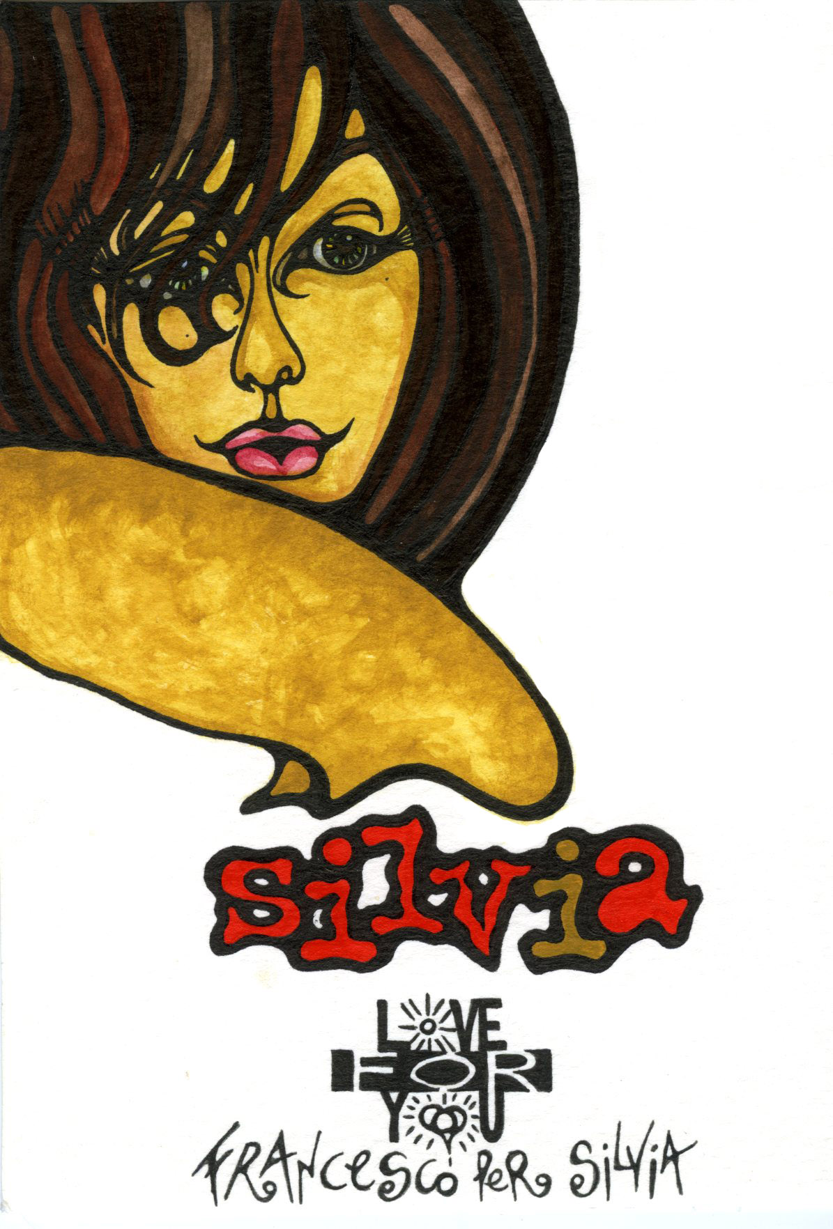 Visto che oggi il giorno, all’alba, è cominciato con il pensiero rivolto a Silvia, è continuato pensando a Silvia, ho visto bene di chiuderlo pensando a Silvia… E, nonostante fossi molto stanco, ho cercato tra i tanti disegni a lei dedicati e a lei lasciati qualcuno tra i pochi originali che avevo conservato per me.