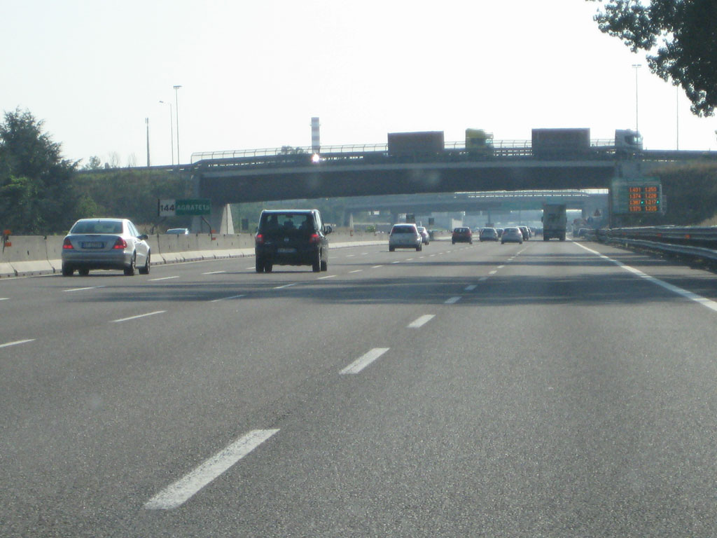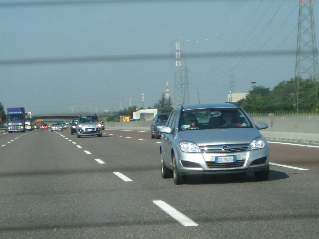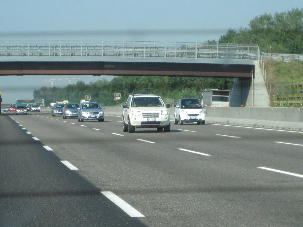 Nelle foto che seguiranno, scattate da mia moglie, beninteso, potrete vedere alcune situazioni abituali; tenete inoltre presente che io viaggiavo con la Smart, sulla prima corsia, ad una velocità compresa fra i 110 ed i 120 kmh., spostandomi sulla seconda solo per sorpassare i camion e poi rientrare.