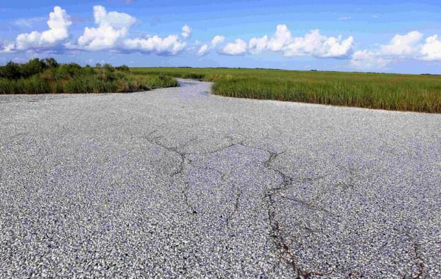 Si fa fatica a capire a prima vista, ma sono pesci morti quelli che coprono la superficie dell’area di Bayou Chaland, in Louisiana.