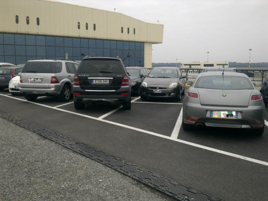 Sono a Malpensa coi miei amici, sono entrato in un parcheggio a pagamento che segnalava libero e poi ho trovato il solito coglione col suv che occupa due posti; dopo un paio di minuti ho trovato un signore che se ne andava.