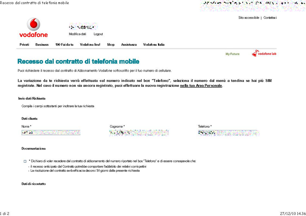La differenza è netta, per cui dopo aver acquistato ed attivato la chiavetta Tim mi sono messo all’opera per disdire l’abbonamento della Sim Vodafone.