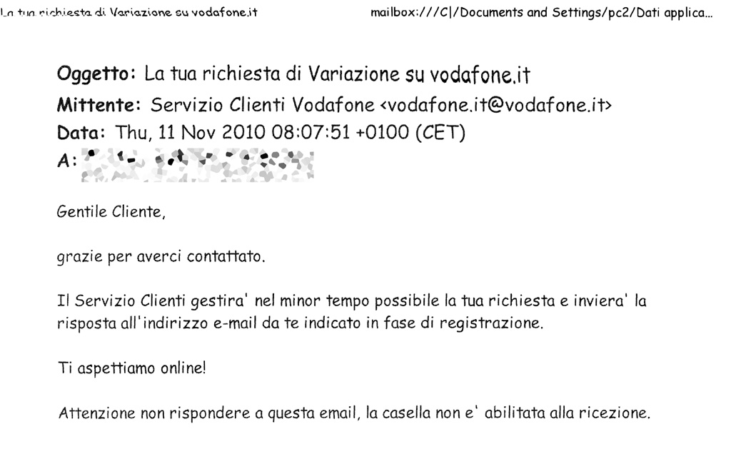 Le faccio notare che al 15 dicembre una sua collega mi aveva comunicato che entro pochi giorni sarebbe stata disattivata, ma lei mi comunica che io ero stato contattato telefonicamente il 9 dicembre dalla Vodafone.