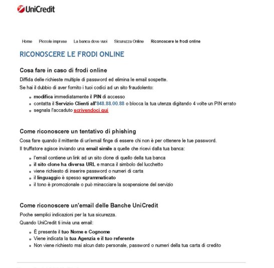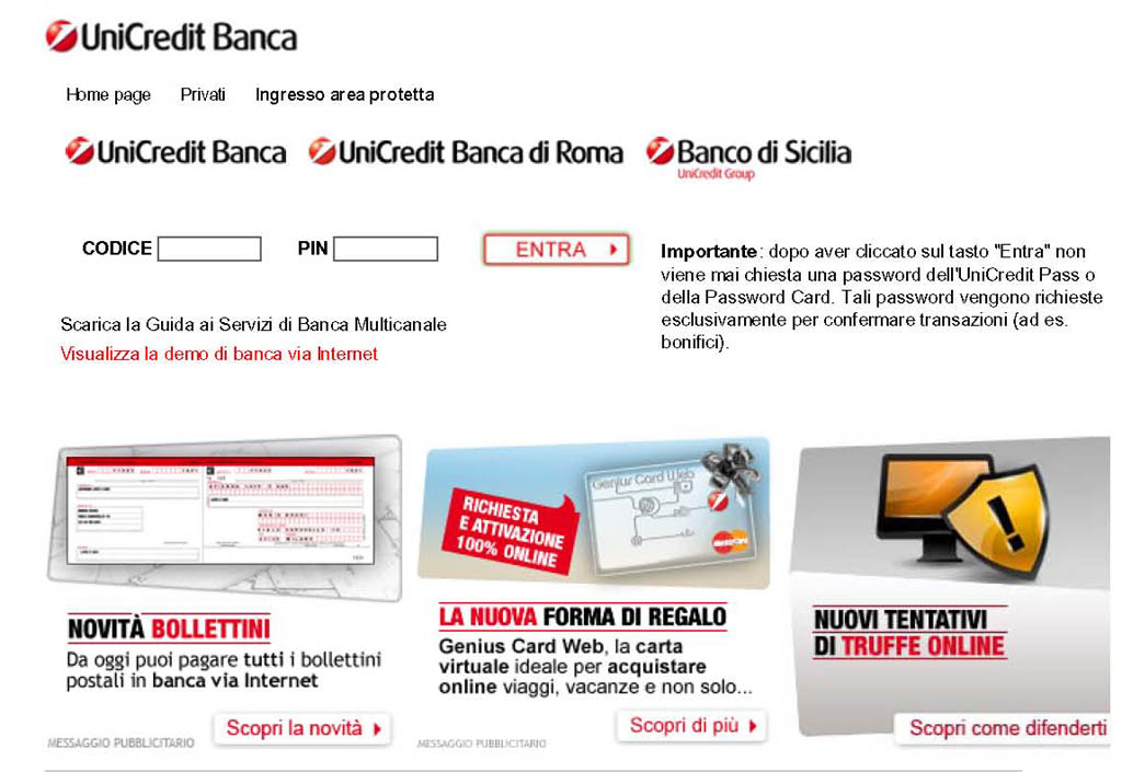 Per scrupolo sono andato sul sito di due banche, Unicredit e Bcc. In entrambi i casi quando si arriva sulla pagina dove è necessario digitare i dati di accesso vi sono avvisi e spiegazioni circa la possibilità di truffe online.