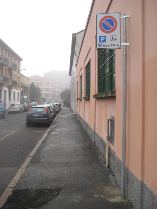 P.S. Intelligentemente questa volta lo hanno posizionato a filo muro, in modo da evitare che i camion in manovra la colpiscano nuovamente.
