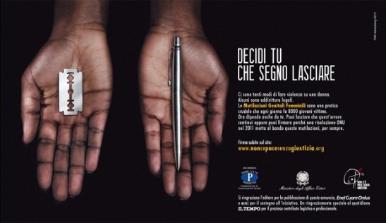 Puoi lasciare che quest’orrore continui oppure puoi firmare perché una risoluzione ONU nel 2011 metta al bando queste mutilazioni, per sempre.