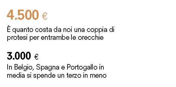 Le protesi Bernafon XTREME costano 1.079,08 euro in Olanda, 2.500 euro in Italia. Le protesi GNResound in Germania costano 680 euro, in Italia 2.375. Il tariffario non viene aggiornato dal 1999 e la quota coperta è di 660 euro a protesi.