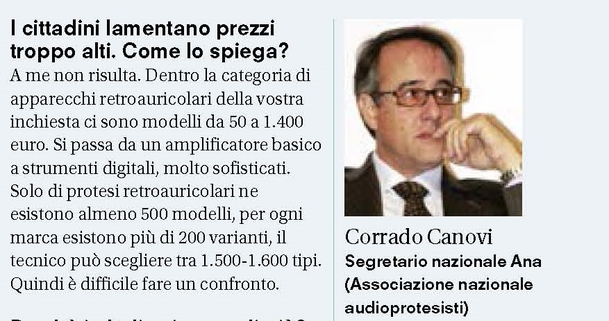 “È compresa anche l’assistenza e la professionalità del protesista, che nel nostro paese, a differenza di altri, esce da un corso universitario – ci spiega Corrado Canovi, segretario dell’associazione italiana audioprotesisti – ma determinanti sono le dimensioni del mercato: in Italia si vendono pochissime protesi, 300mila all’anno contro le 700mila della Germania.