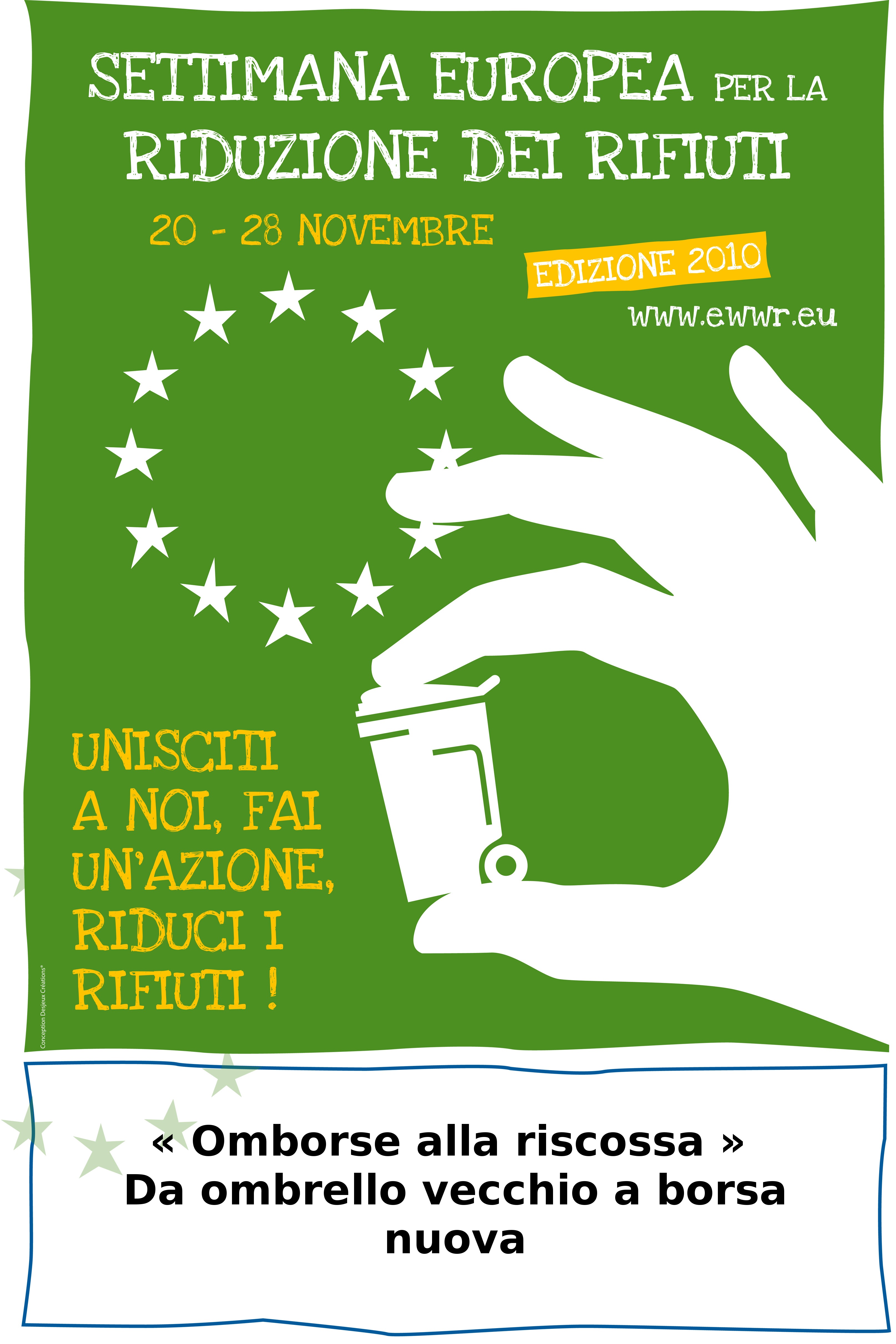 Non c’è nulla di definito in merito, se non qualche tentativo di artisti che danno nuova vita alla tela degli ombrelli, utilizzandola per le loro creazioni; è però da segnalare il progetto Omborse alla riscossa, lanciato dalla Coop. Senape che prevede la realizzazione di borse per la spesa con la tela degli ombrelli rotti.