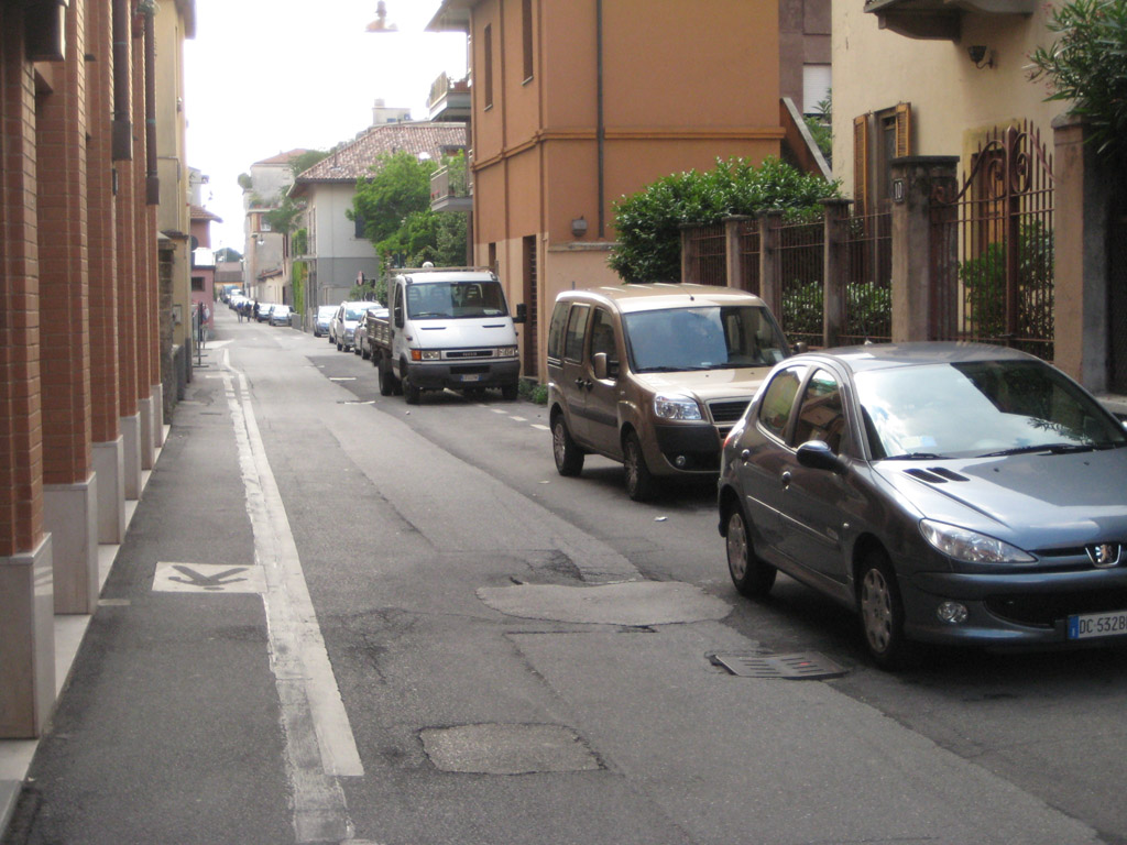 (Resta il fatto che spesso si trovano auto parcheggiate anche dall’altro lato… e pedoni a parte, mi chiedo sempre come potrebbe passare un camion dei pompieri … )