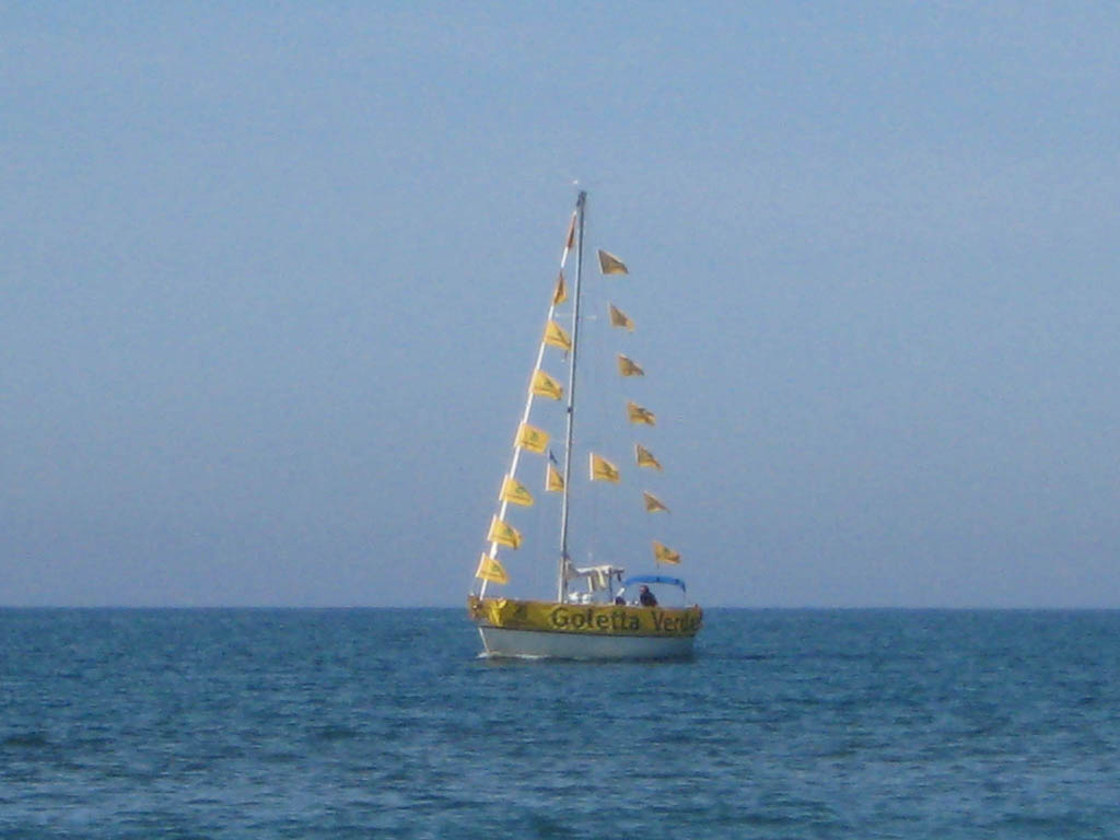 Sebbene io non ami il mare o, perlomeno, la vita da spiaggia, ci siamo recati a Chiarone, premiata da Legambiente e neanche a farlo apposta chi si è ormeggiato davanti alla spiaggia?