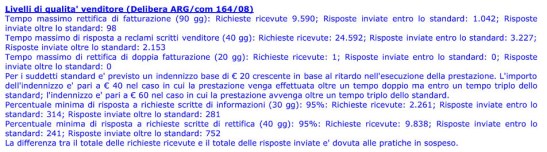 – in un campione di n. 748 reclami pervenuti tra il 1° luglio 2012 e il 30 settembre 2013 ed aventi ad oggetto il mancato rispetto della periodicità di fatturazione, n. 740 sono risultati fondati;