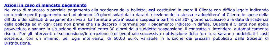 Come si legge in bolletta, in caso di mancato pagamento le azioni sembrano essere rapide e severe nei confronti del consumatore: