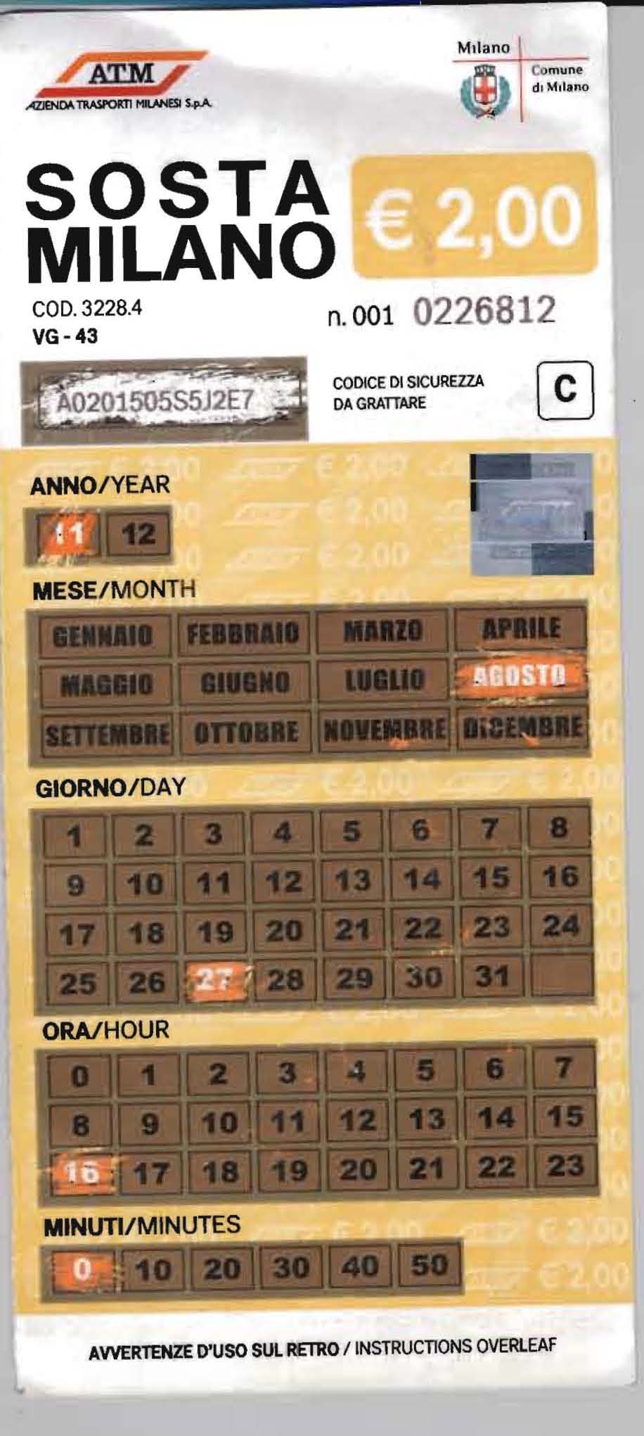 Normalmente il Testimone utilizza i classici Gratta & Sosta da 2 €,come quello della foto qua sotto: