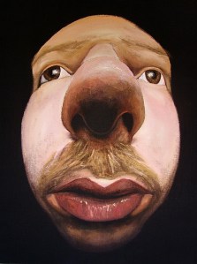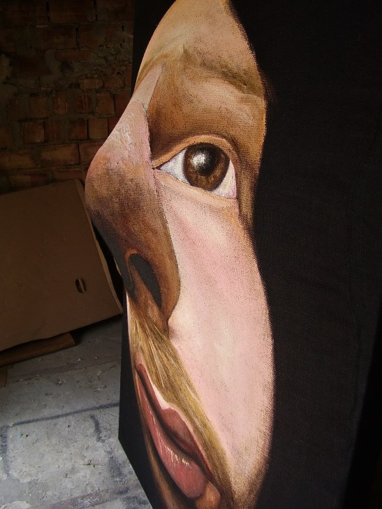 L’artista mette in atto una sorta di gioco tra spettatore e opera in cui, grazie all’anamorfismo, chi osserva la tela viene coinvolto non solo visivamente, ma invitato ad avvicinarsi al lavoro per constatarne la tridimensionalità.