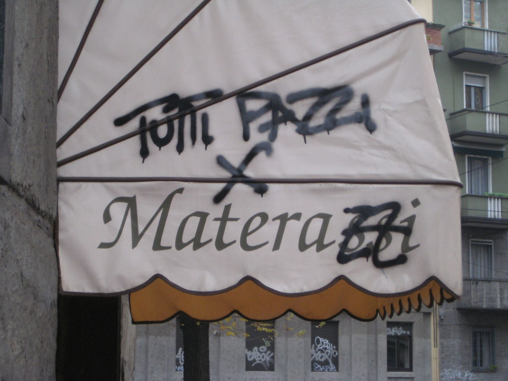 Di primo acchito la scritta fa sorridere, ma resta il fatto che è stata rovinata l’insegna di un’attività commerciale … e non è cosa….