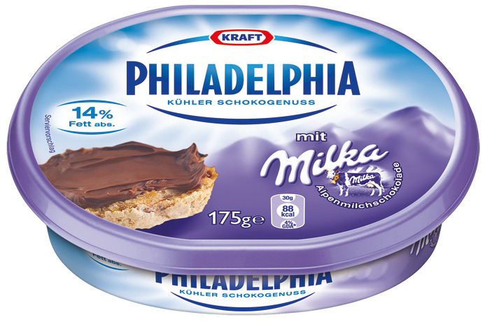La sensazione è di avere di fronte una specie di Nutella, certo il sapore non è lo stesso e il vissuto salutista/edonista neppure, ma la consistenza e il colore sono simili, come pure l’immagine della fetta spalmata con uno strato di crema. L’abbinamento tra il marchio Philadelphia e Milka è fondamentale perché richiama la notorietà del cioccolato e incuriosisce.