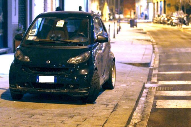 Ad onor del vero la Smart è guidata dall’uomo, per cui il titolo: Nicole Minetti parcheggia sul marciapiede è fuorviante e, forse, inesatto. Resta il fatto che, di chiunque sia l’auto, notiamo dagli adesivi sul parabrezza che gode di numerose facilitazioni, ma a quanto pare non basta, infatti parcheggia sul marciapiede.
