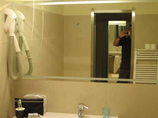 Nella foto che segue, si capisce che l’illuminazione, proveniente da una lampada al neon 😦 posta sopra lo specchio era sufficiente… se non fosse che…