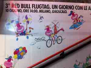 Red Bull per promuovere Flugtag, un evento che si terrà all’idroscalo di Milano, ha tappezzato alcune fermate della metropolitana con decine di manifesti e striscioni lunghi 5-6 metri.