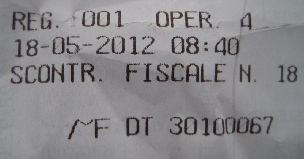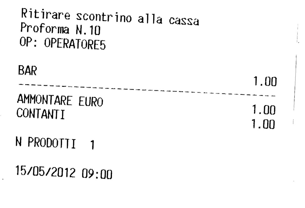 Alcuni giorni fa mio padre è andato a fare alcuni esami in un clinica milanese ed alle 09.00 si è recato all’unico bar presente nella struttura dove hanno battuto lo scontrino proforma n. 10.