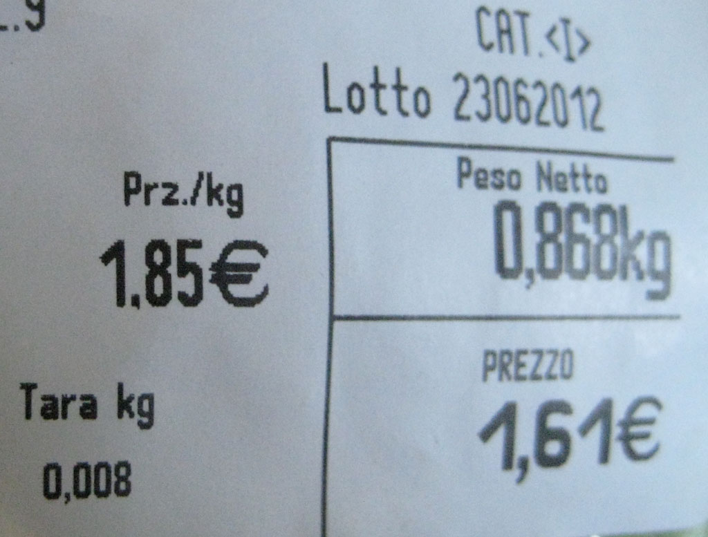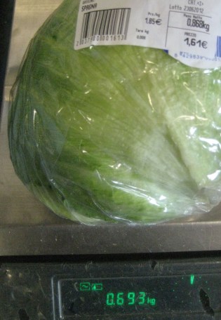 Oggi vi segnalo una cosa della quale si è accorto questa mattina mio padre (il che testimonia che il mio essere “un rompiscatole” cambia anche l’atteggiamento altrui…) al Carrefour, perchè gli è parso perlomeno strano che tre differenti cespi di insalata avessero lo stesso prezzo ovvero lo stesso peso.