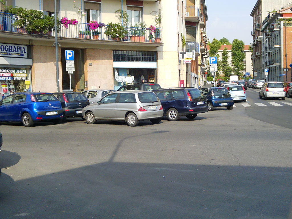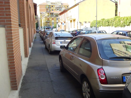 e parcheggiando altre vetture in parte sul marciapiede, ma rendendo inutilizzabile di fatto il parcheggio per i residenti oppure per auto di passaggio…