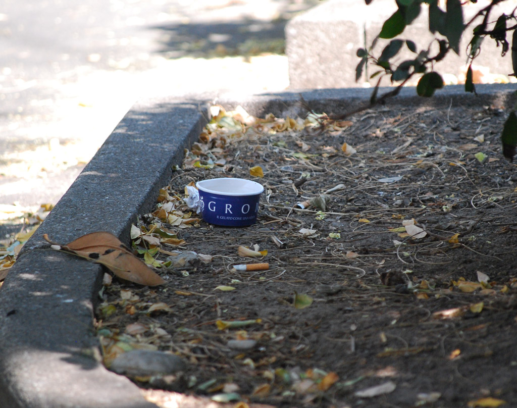 Il marciapiede, la strada, non sono mica casa nostra. Perchè dubito che gli imbecilli in questione gettino le coppette di gelato sul tappeto del salotto, in attesa che si decompongano naturalmente…