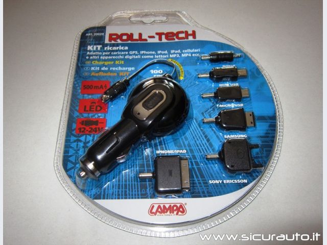 Roll-Tech (€ 15,85 ) è un caricabatterie universale per auto e camion a 12 e 24V che eroga una tensione di 5 Volt (per l’esattezza 5,5V) e una corrente massima di 0,5A che lo rendono ideale per la ricarica di lettori mp3, dispositivi vivavoce, auricolari Bluetooth e tutti i dispositivi poco famelici di energia.