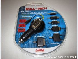 I due kit dell’azienda italiana sono blisterati in due differenti configurazioni per assecondare diversi livelli di potenza: Dual-Amp per la ricarica con corrente selezionabilea 800 e 1500 mA e Roll-Tech per caricare i dispositivi che richiedono al massimo 500 mA di corrente; entrambi sono corredati di specifici adattatori per cellulari Nokia, Samsung, Sony Ericsson, iPhone e iPad, connettore Micro e MiniUSB.