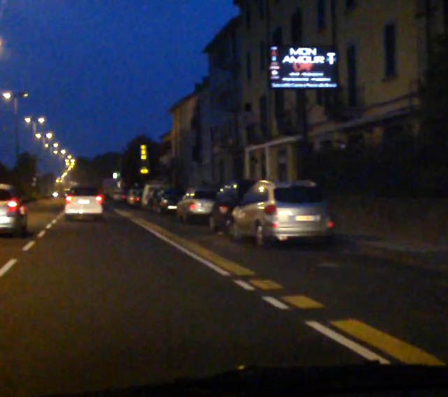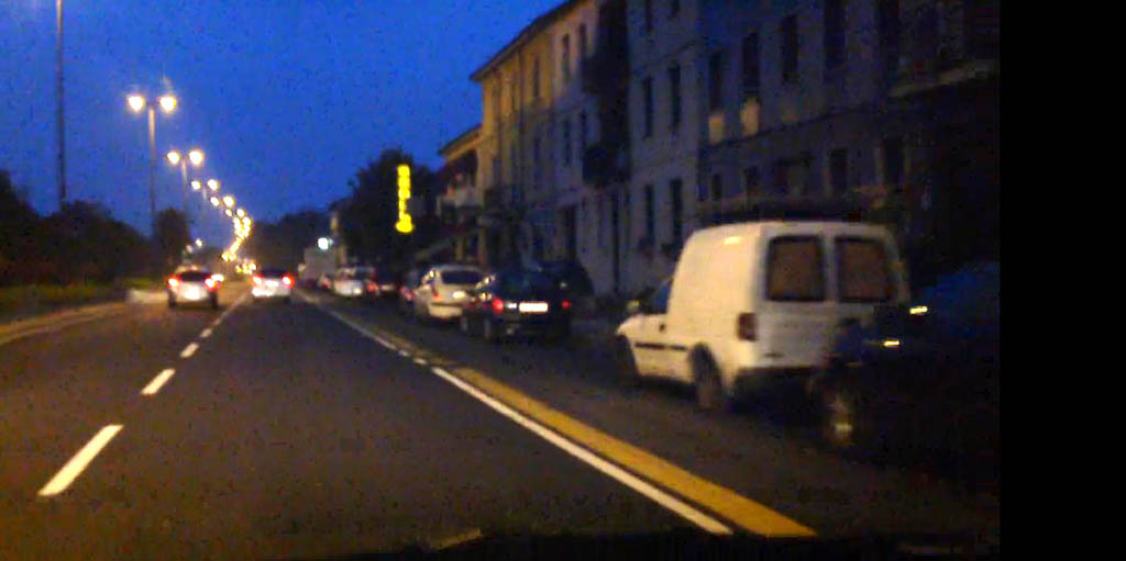 Le foto che seguono, sono quello che sono, ma le ho tratte da un breve filmato fatto alle 6.30 del mattino, per cui per poter agire in sicurezza ho dovuto accantonare la qualità. Comunque sia, tutte le auto in sosta sulla destra, sono in sosta decisamente vietata.