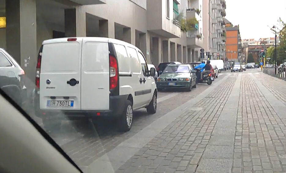 Se non fosse che spostandomi sulla carreggiata ho notato che poche decine di metri più avanti, un grosso Suv (Bmw X5) aveva parcheggiato, sulla strada, in doppia fila.