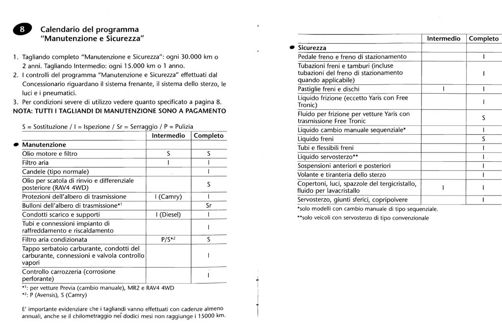 mi scrivono che il tagliando offerto è in linea con quanto previsto dal produttore, tuttavia il libretto di manutenzione Toyota prevede anche la sostituzione del Filtro aria condizionata e del liquido freni (che io seguendo quello che aveva scritto Caprino circa i problemi all’Abs della Matiz avevo cambiato lo scorso anno)