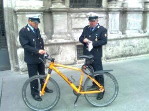 Col cellulare fotografo il numero di telaio e i due vigili con in mano la mia bici.