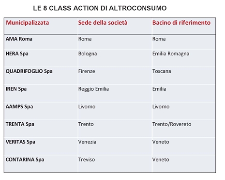 Queste le otto municipalizzate, verso cui Altroconsumo procede con le class action, e i loro bacini di riferimento. Nessuno si senta escluso.