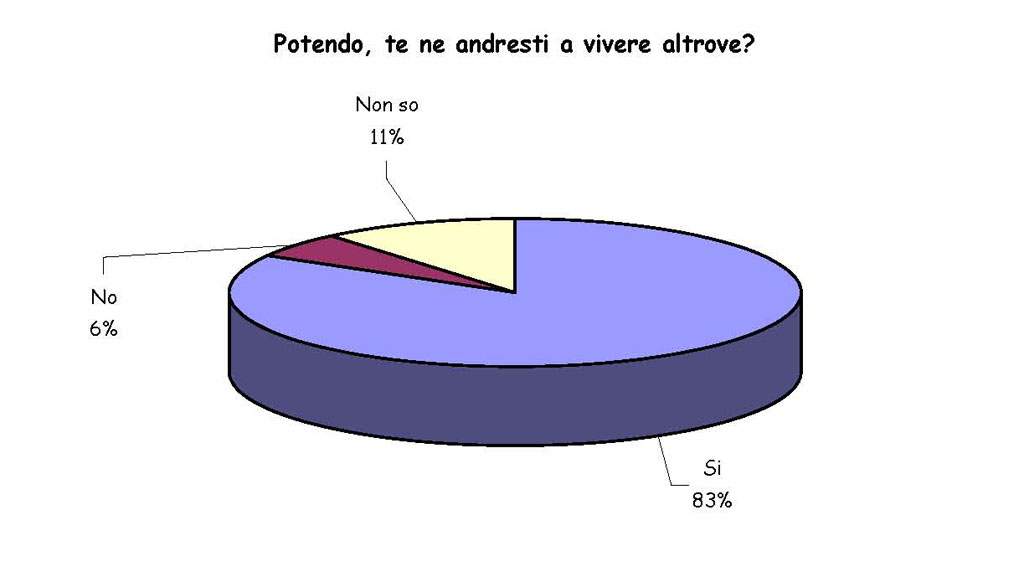 Questo sondaggio nasce da una mail inviata nei giorni scorsi agli Amici; uno sfogo, in pratica, alla quale però ho ricevuto diverse risposte che oltre a concordare con il mio sentire, aggiungevano il desiderio di trasferirsi altrove, potendo.