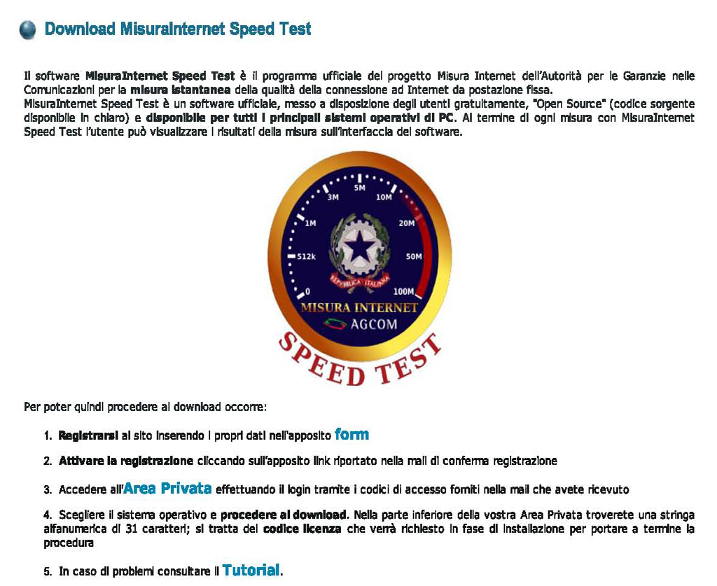 leggo su Il Salvagente che è disponibile online “Misura Internet Speed Test”, un software gratuito dell’Autorità per le garanzie nelle comunicazioni (Agcom) che puoi scaricare cliccando QUI.