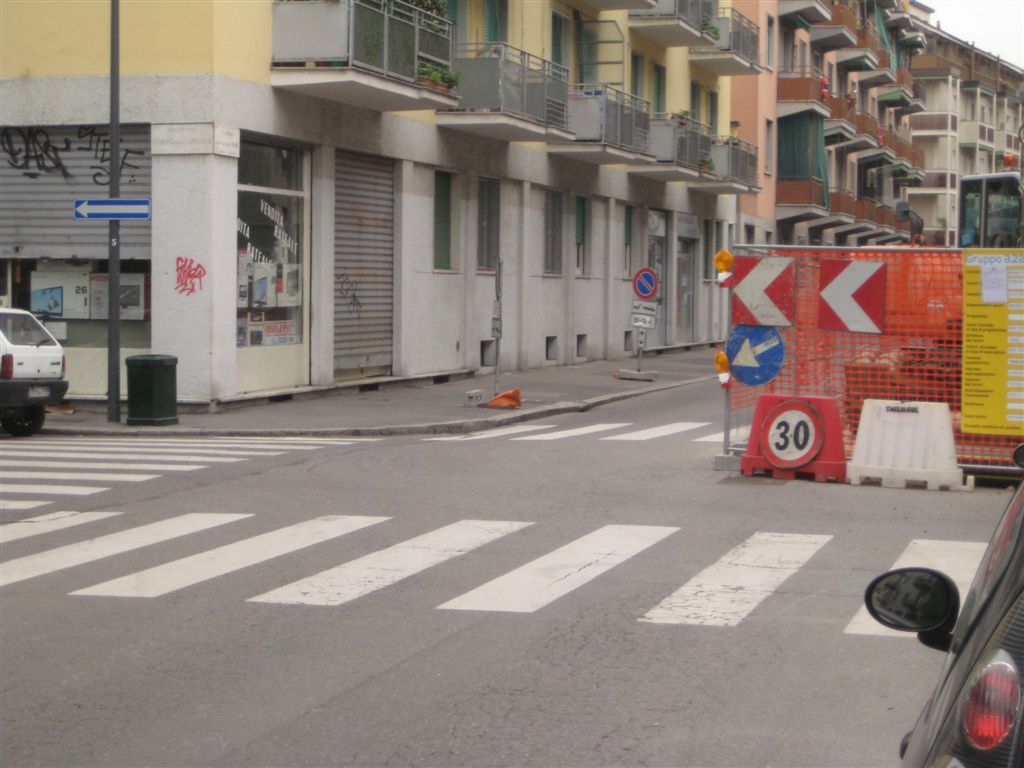 In questo scatto la situazione è ancora gestibile, tuttavia quando passo verso le 17 (ed è già buio) ho notato che le auto sono in sosta sino all’angolo, cosa questa che oltre ad ostacolare l’autobus rende praticamente invisibili i pedoni che devono attraversare, e che di fatto sbucano (spesso colpevolmente, perchè è vero che hai la precedenza, ma questo non ti esime dal guardare prima di attraversare…) davanti all’auto che già di per sè è costretta a spostarsi sulla sinistra per poter transitare nella porzione di strada libera.