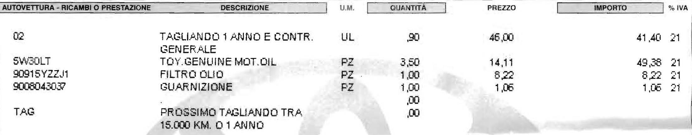 …tuttavia è giusto precisare che in realtà ha pagato € 121,07 (Iva compresa) anche se sul sito è specificato che: Un intervento veloce e completo a tua disposizione senza alcun costo aggiuntivo con la massima qualità Toyota.