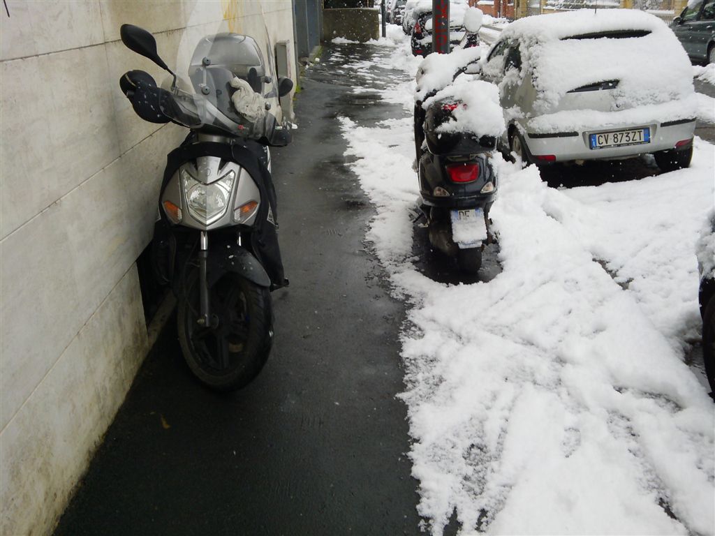 Ed allora quando transiti su un tratto pulito e ti trovi davanti due scooter, uno dei quali parcheggiato con scarsa attenzione, ti chiedi se sarebbe stato così impegnativo parcheggiarlo qualche metro più avanti, in modo da non rendere difficile il transito ai pedoni (penso a mamme con bambini, anziani, ecc.) , su uno dei pochi tratti puliti.