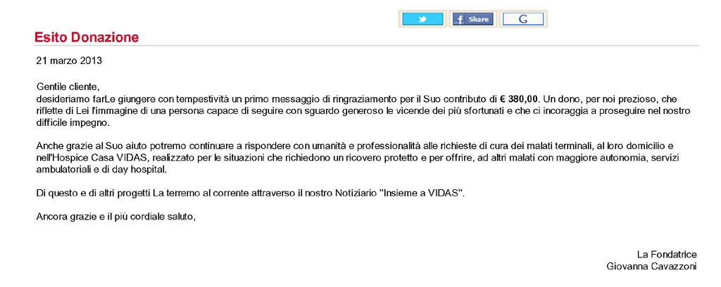 Vidas però è tra i bollettini di donazione che faccio insieme ai miei genitori a fine anno.