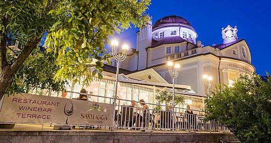 Il 26 aprile ci siamo recati in Alto Adige, a Merano, e qui abbiamo pranzato sulla bella terrazza del Saxifraga (Passeggiata Lungo Passirio – Tel. 366-7002240 – sito web); il locale è molto curato, il servizio è sicuramente buono, con personale che ovviamente ha il tedesco come prima lingua, ma in ogni caso non vi sono problemi di sorta a parlare italiano.