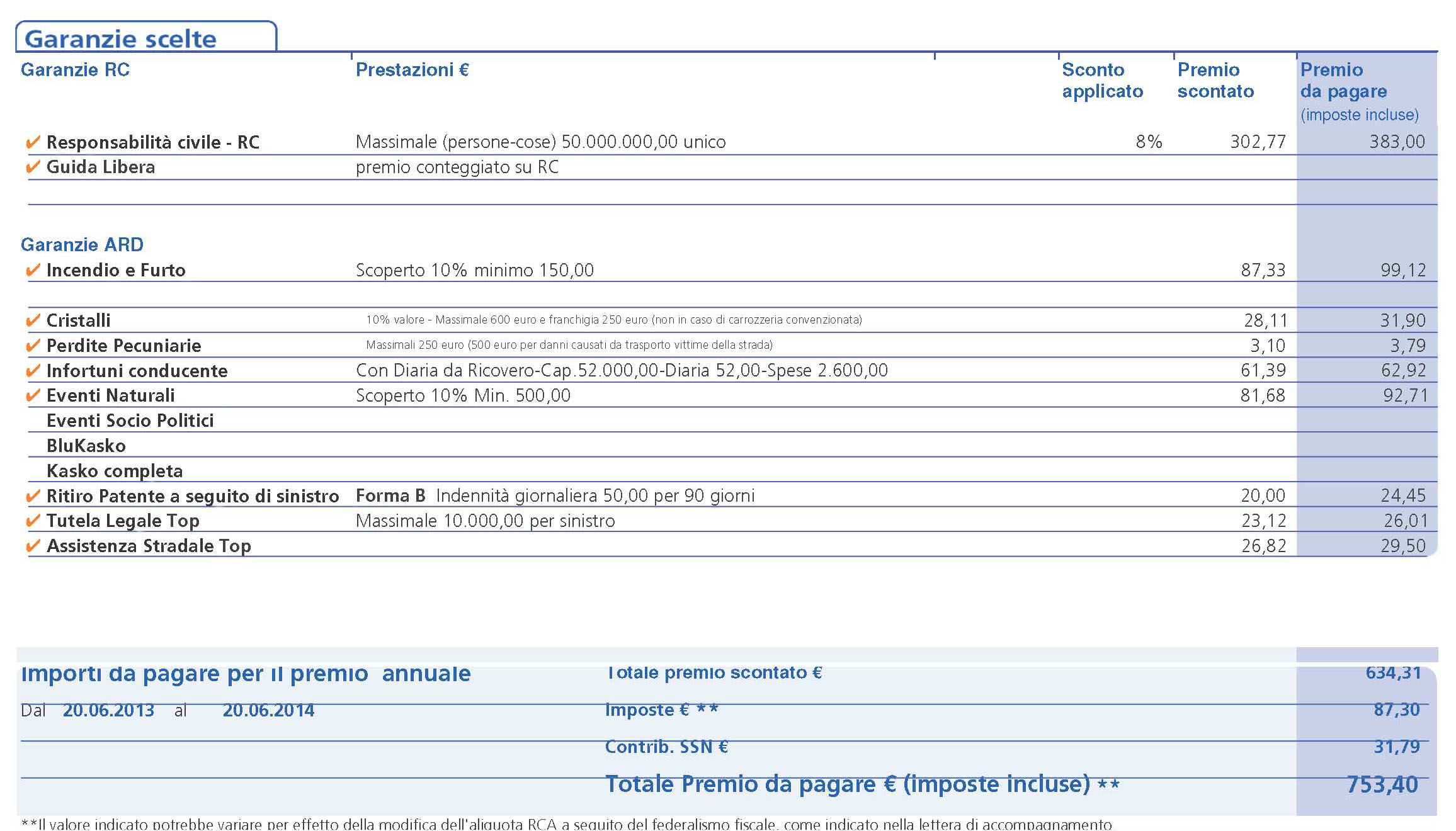 Va da sè che ho verificato poi la proposta di Zurich, scoprendo che il prezzo saliva ad € 753,40, superiore quindi di 111 € rispetto alla Genialloyd, ma inferiore di 14 e rispetto all’anno precedente, in contrasto con quanto fatto da Genialloyd che aveva invece aumentato.