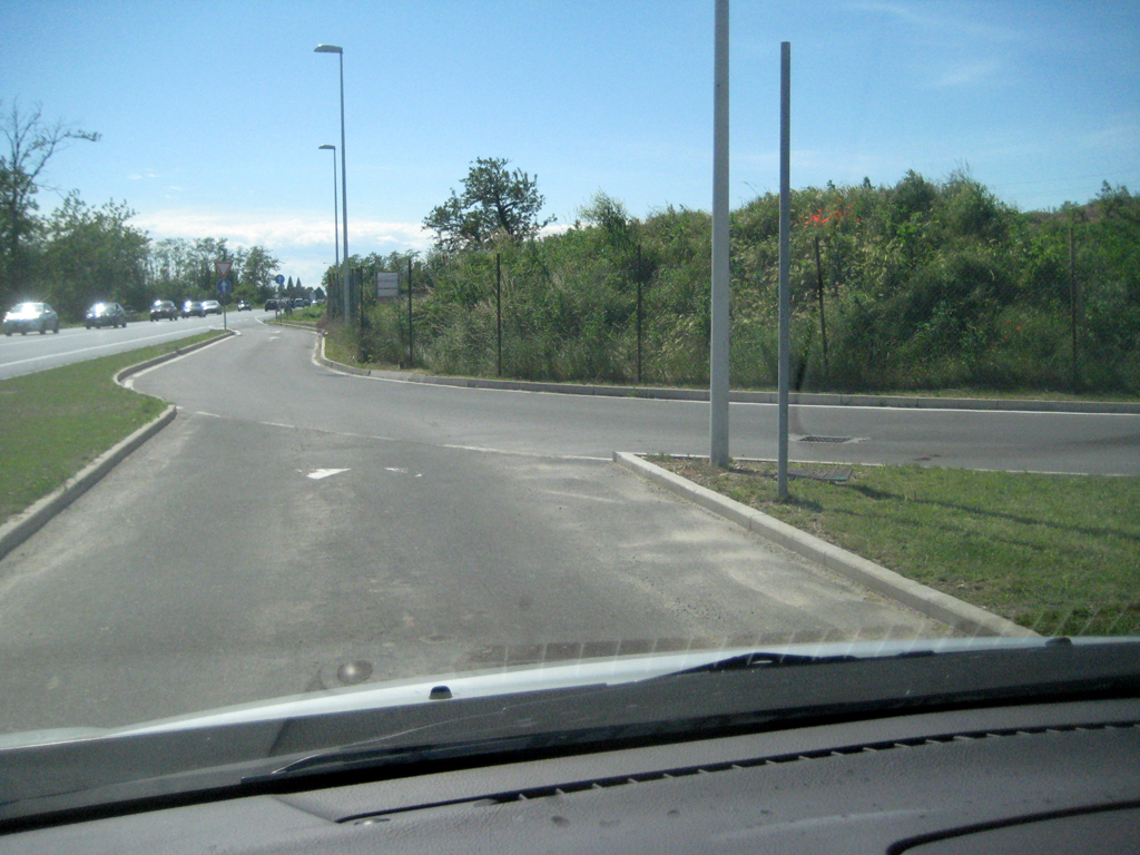 Una piccola criticità l’ho rilevata anche dal fatto che uscendo dall’area, prima di immetterti sulla corsia che ti porta all’innesto con la Statale, devi (ovvio) dare la precedenza a chi arriva dalla destra ovvero alle (poche) auto che provengono da quello che mi sembra essere un parcheggio; non essendoci una segnaletica chiara, manca il cartello ed i triangoli bianchi sull’asfalto sono poco leggibili, per cui l’automobilista tende a buttare lo sguardo nello specchietto laterale sinistro per capire se riesce ad infilarsi fra le auto in arrivo, e può non fare mente locale sull’auto che arriva da destra.